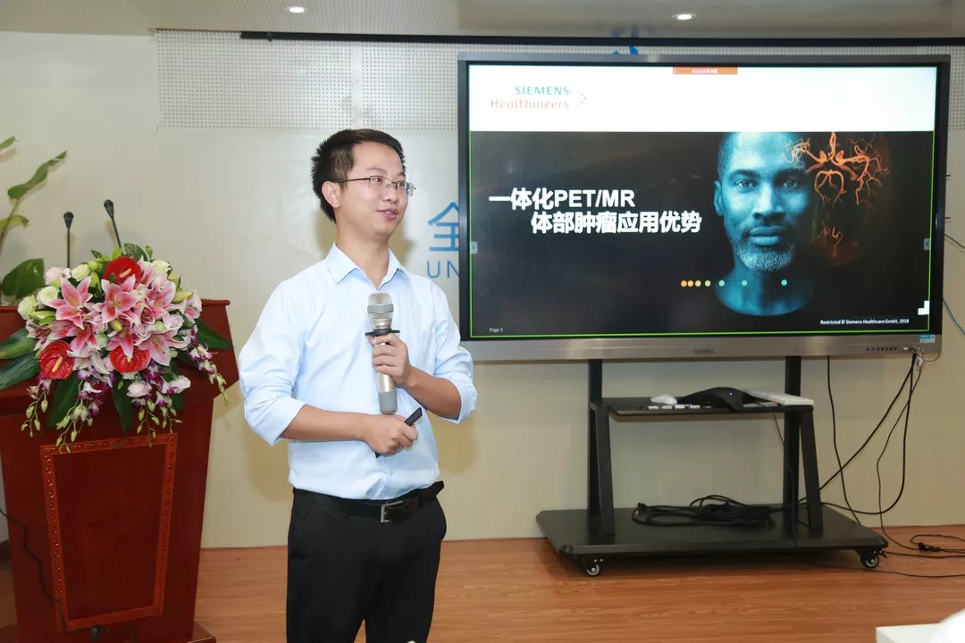 熊海军老师带来主讲课题《西门子PET/CT肿瘤应用新技术》。从Flow motion技术、PET全身动态、PET多参数分析三个方面进行深度解析。每一个小点讲解配图加以说明,让干货知识变得有趣,吸引在场学员的关注学习。